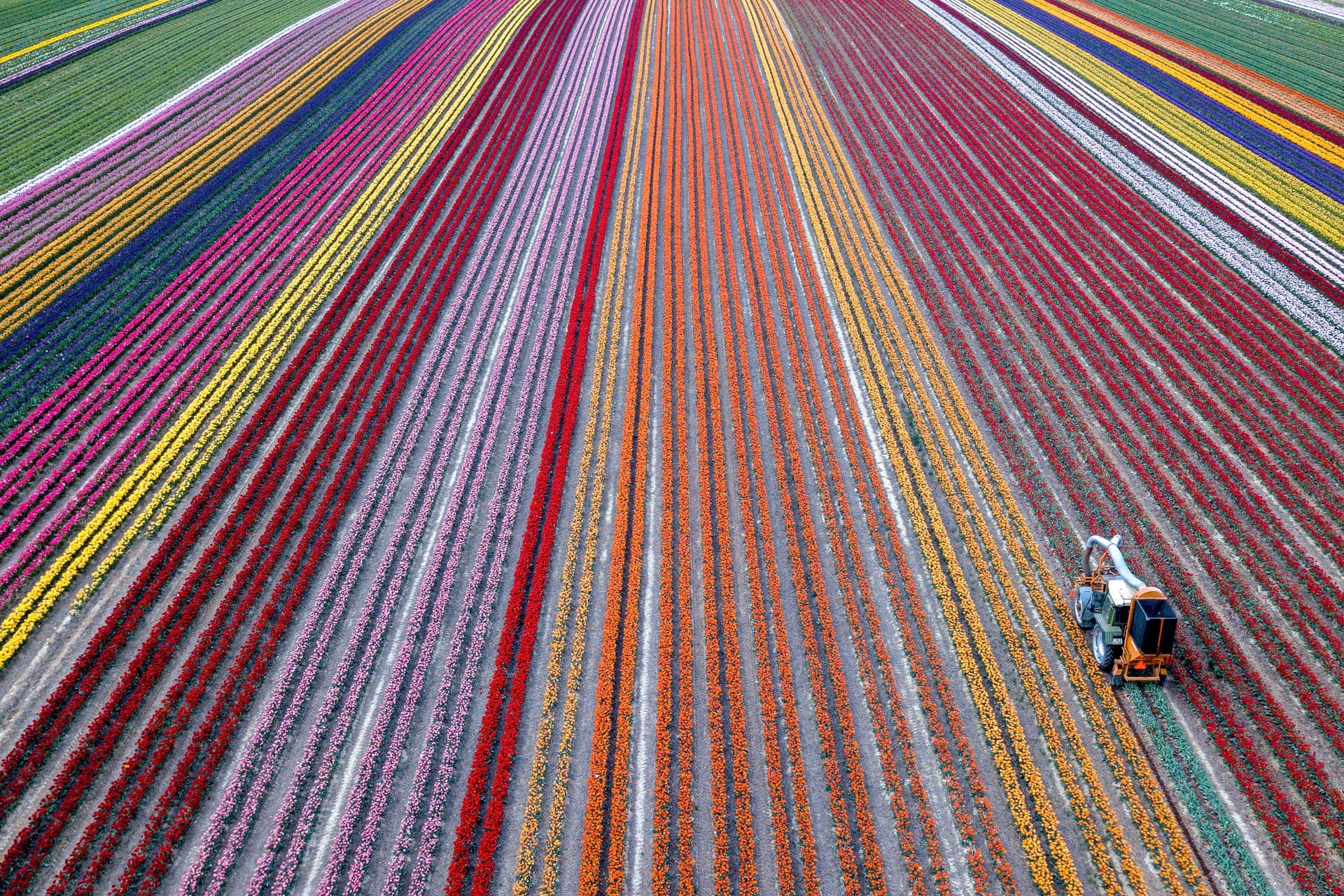 the fields are strung with tulips,