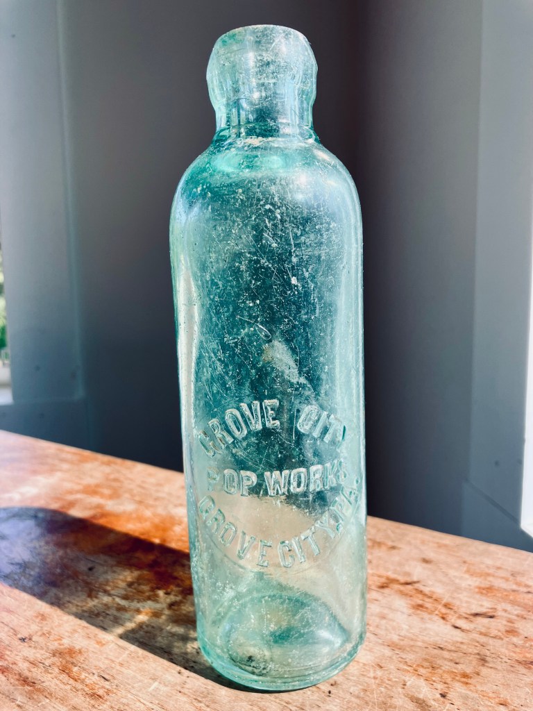 They've begun the seasonal transformation of Wolf Creek. My youngest sons descend the stone steps we fashioned and wade, ankle deep, into the cool waters of Spring, shovels on shoulders, young laborers whose joy is to build dams, move stones, and dig holes. They carve new courses for the obliging stream until storms wreck trees and debris along the banks and the rushing waters stumble over our rocky obstructions. They unearth treasures, secrets of the creek, like the thick blue-glass Pop Works bottle etched by decades of silt and stone made more rough in nature's tumbler until, hidden from view, like fossils, they disappeared beneath the weight of years and the steady current of time. I'm intoxicated by its rare vintage, drinking in the translucent glow, the embossed block letters, the refreshing imperfections. Some likely-long-forgotten soul drank its original contents or Wolf Creek carried them away, having patiently worked off the cap. However, this shell, sitting on my corner table, aglow in the light of a late May afternoon sings from its uncapped mouth no lips nor cork can stop: songs of sand, soda ash, and limestone, of furnaces and factories, its long journey to my table a common tale and mystery! Enchanted, I'm drawn back to those waters, content to waste the waning hours in the familiar flow, amazed, like my sons, with every common treasure until wonder unstops my mouth and I overflow with song!