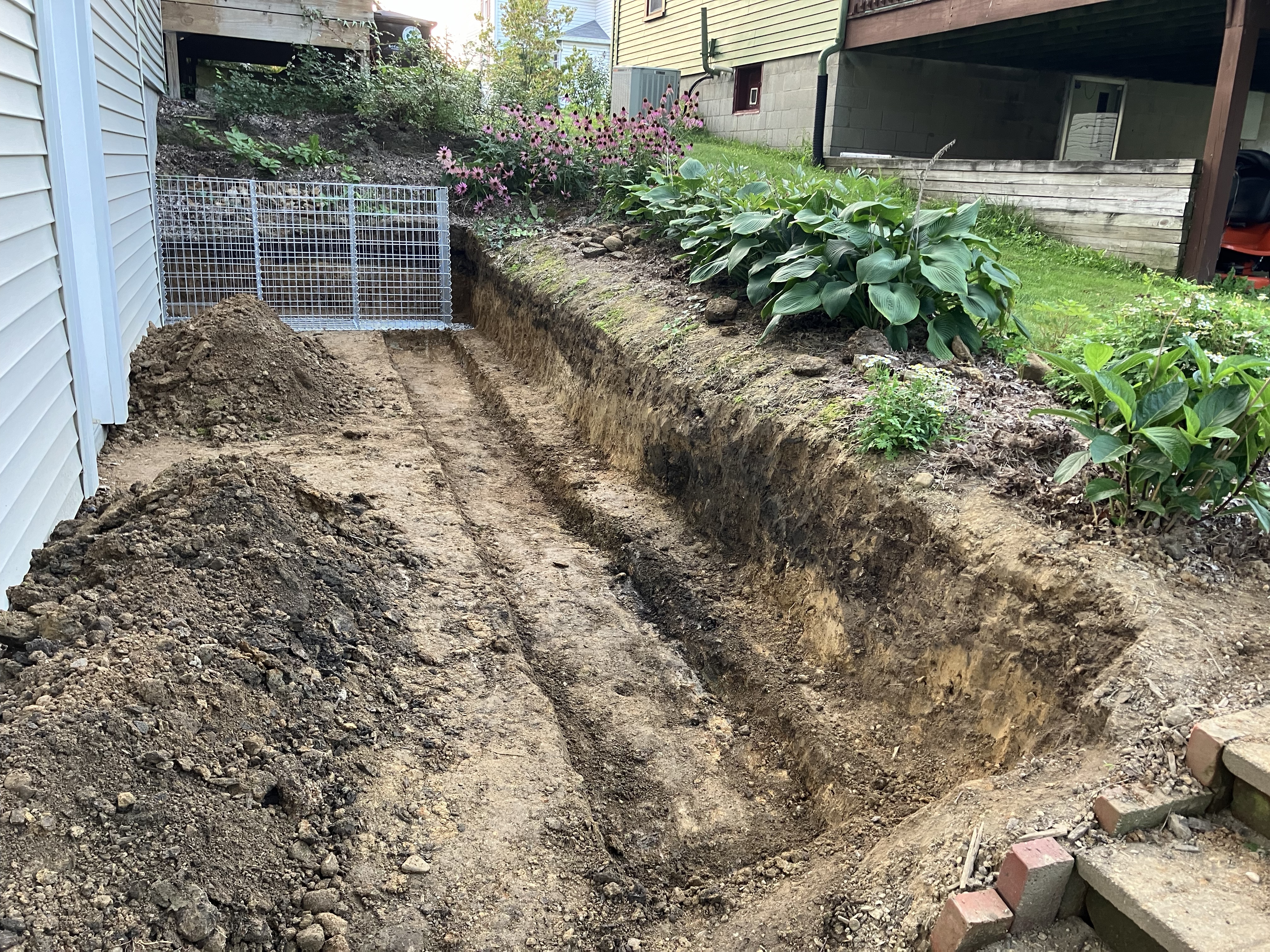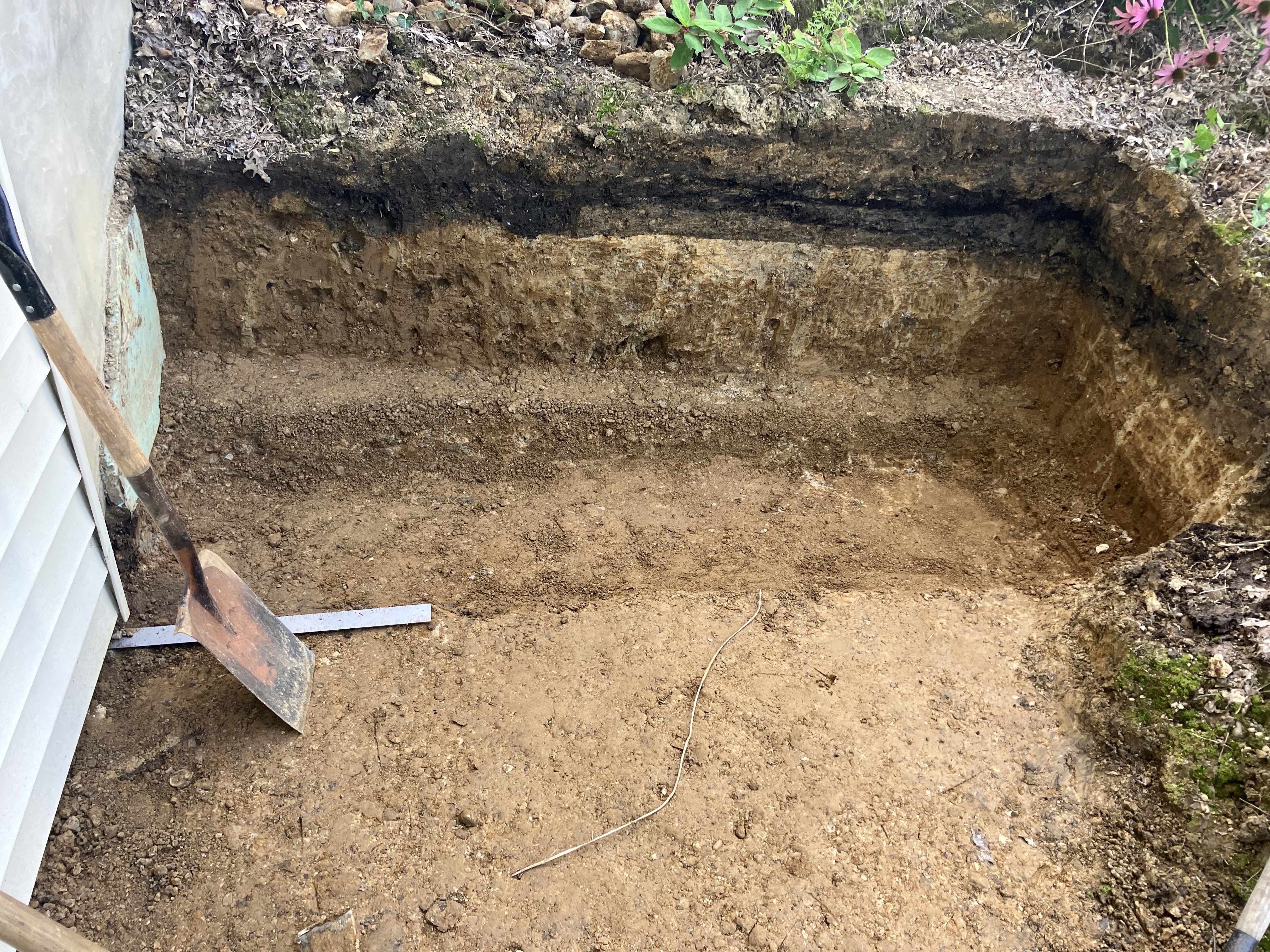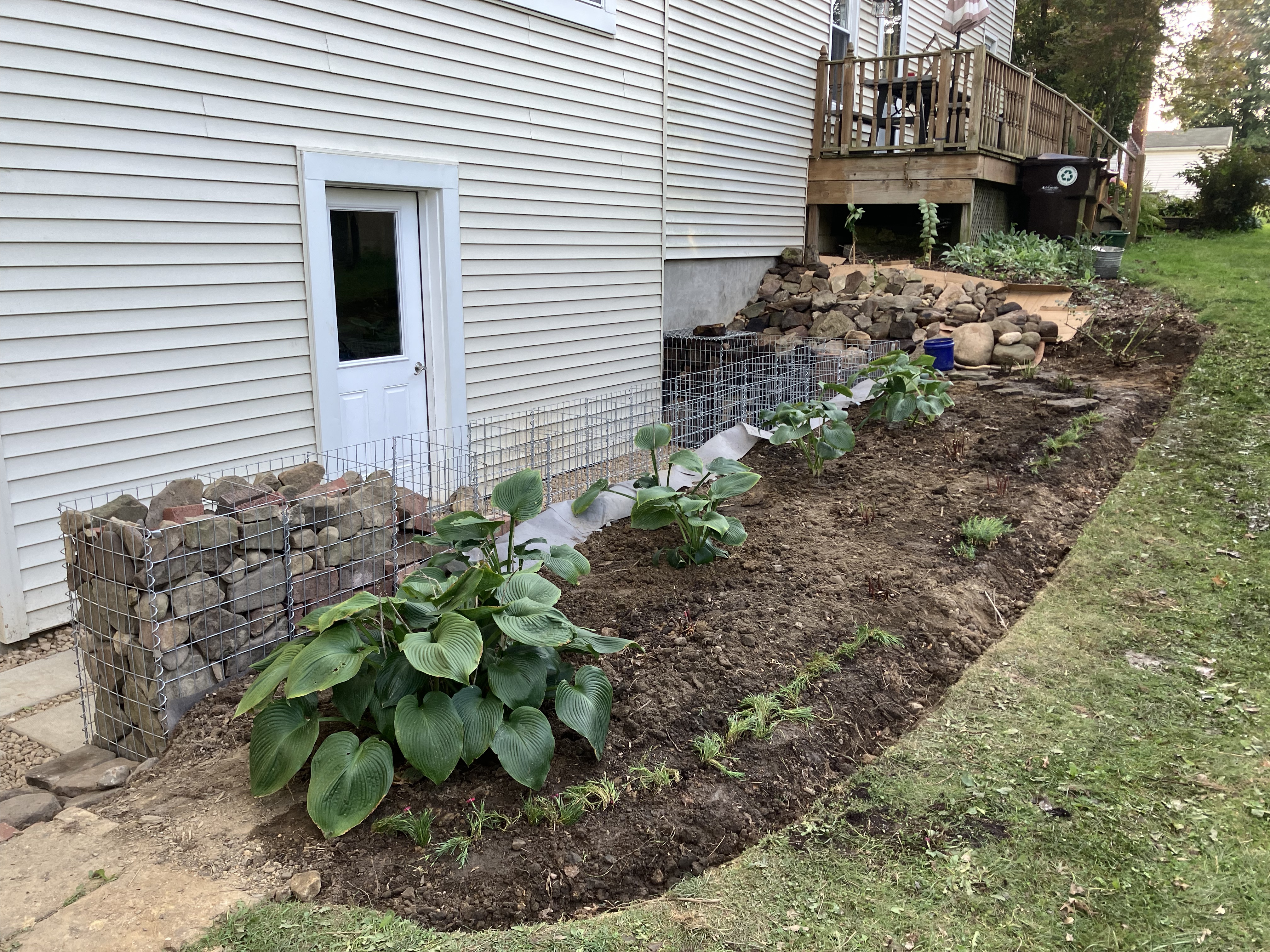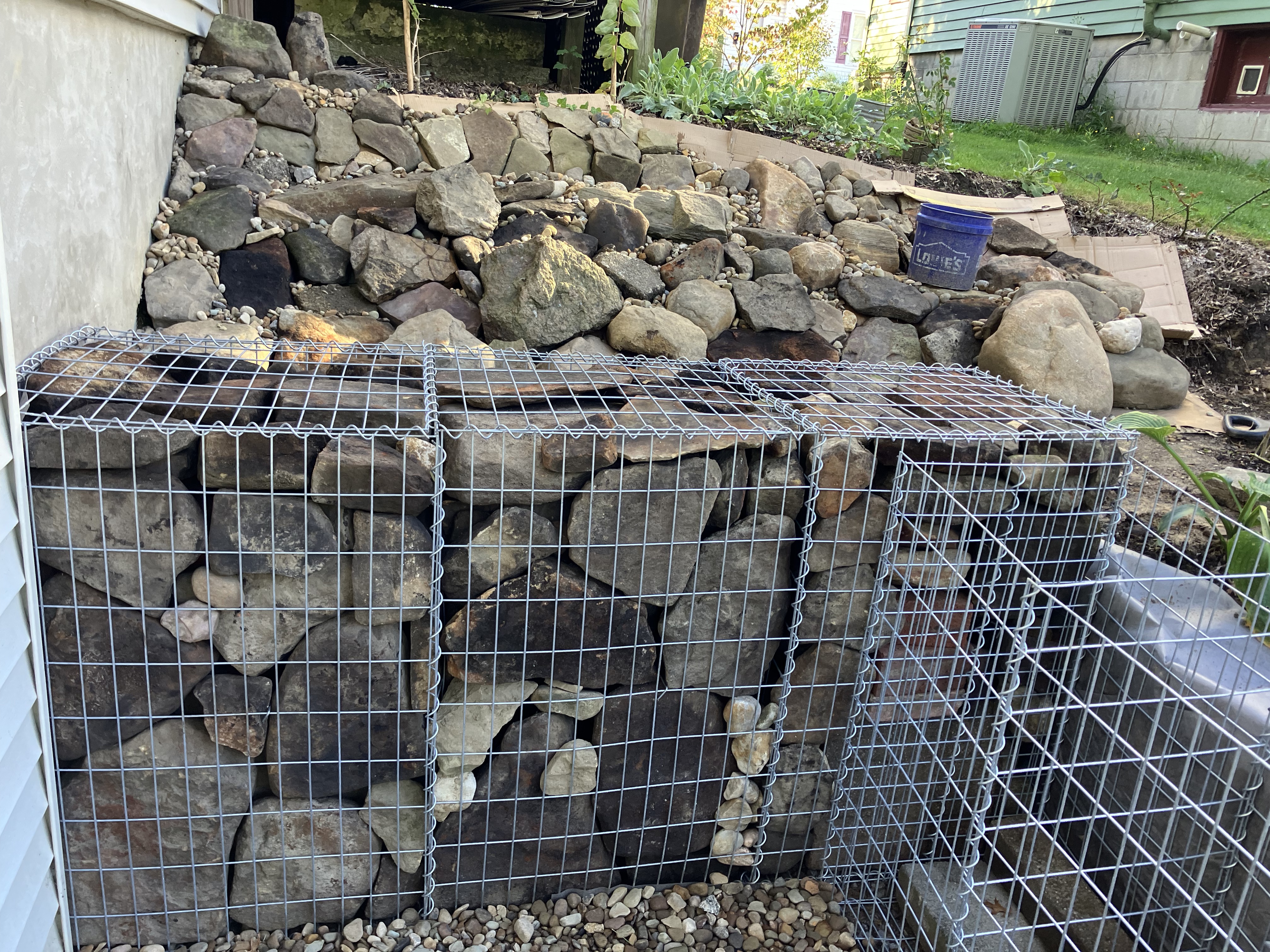 Personally, I love the look of gabion retaining walls, but the work of filling them can be exhausting. We had a lot of bricks and old paving stones to begin the process, leaving the nicer looking landscape rocks for the visible sides. But when you have nearly twenty-two feet of gabions that are thirty-nine inches tall, it demands a lot of rock! Thankfully, I have some local leads for scrap cinder blocks to serve as fill, but we’ve gone to the creek to find those fun-shaped stones that will be visible when you look at the gabions. (I’ll include pictures of our progress after the poem – the images go from the current state to the original excavation of the area in preparation for the gabions)